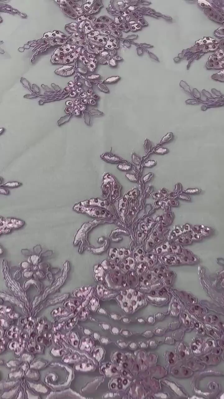 Flower Lace Sequins Fabric - Lilac - Floral Pattern Sequins Embroidered Fabric By Yard