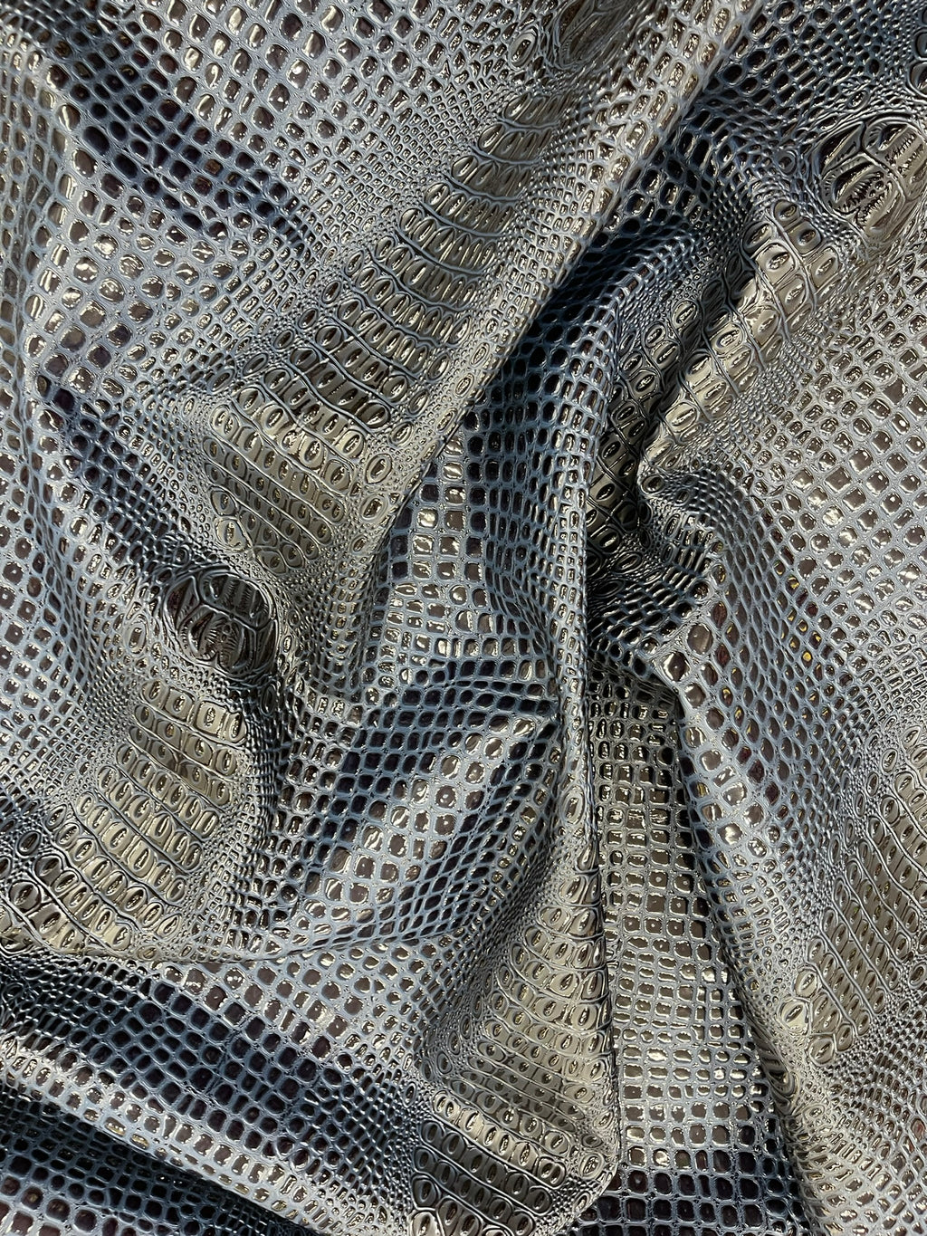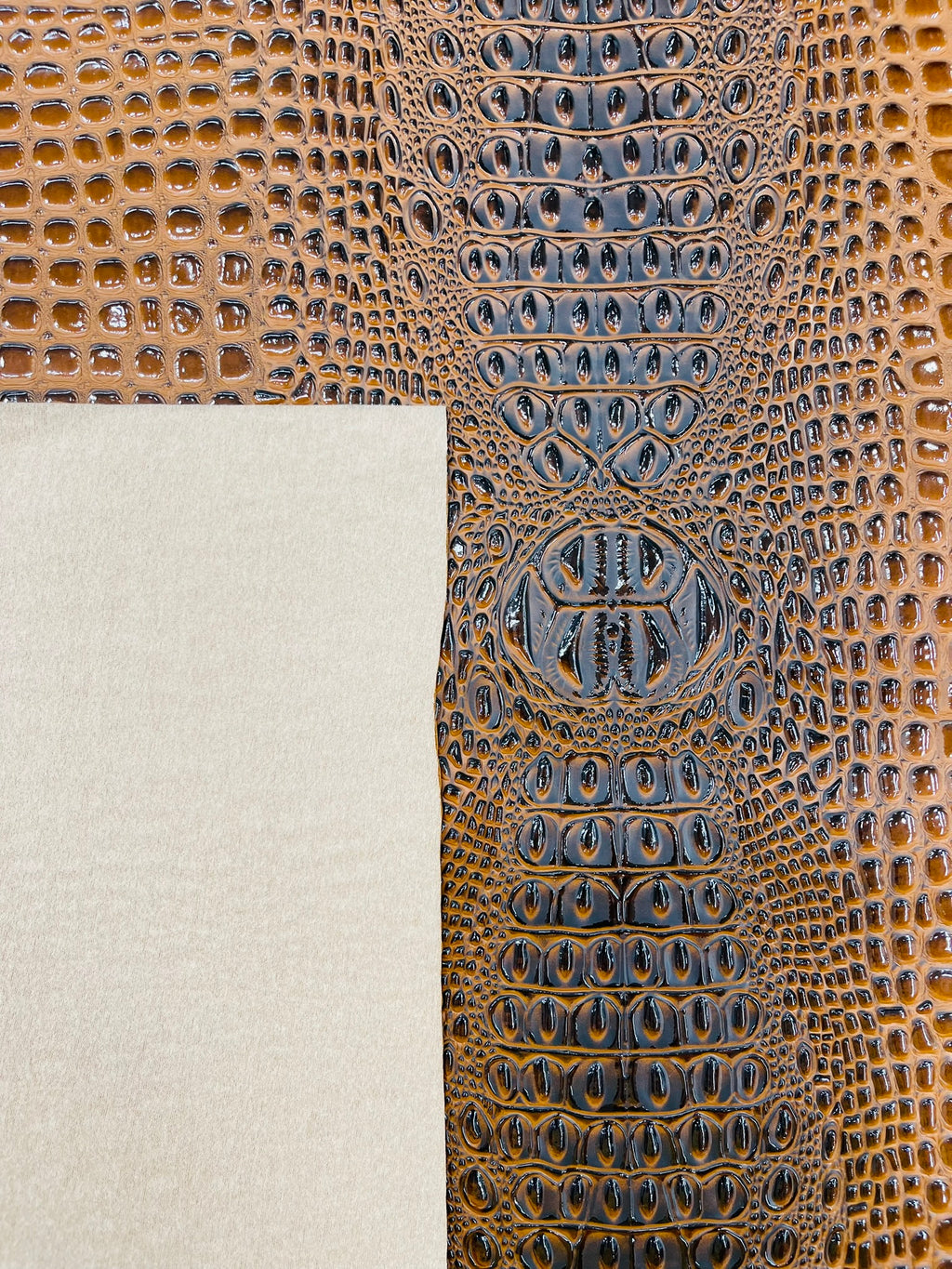 The Gator Vinyl faux fabric is a wonderfully detailed and textured Alligator Faux Leather which has a felt backing. Made with a patented combination of Urethane and PVC. Urethane gives this Alligator Faux Leather an unequaled real Leather feel and the PVC adds to its strength.
