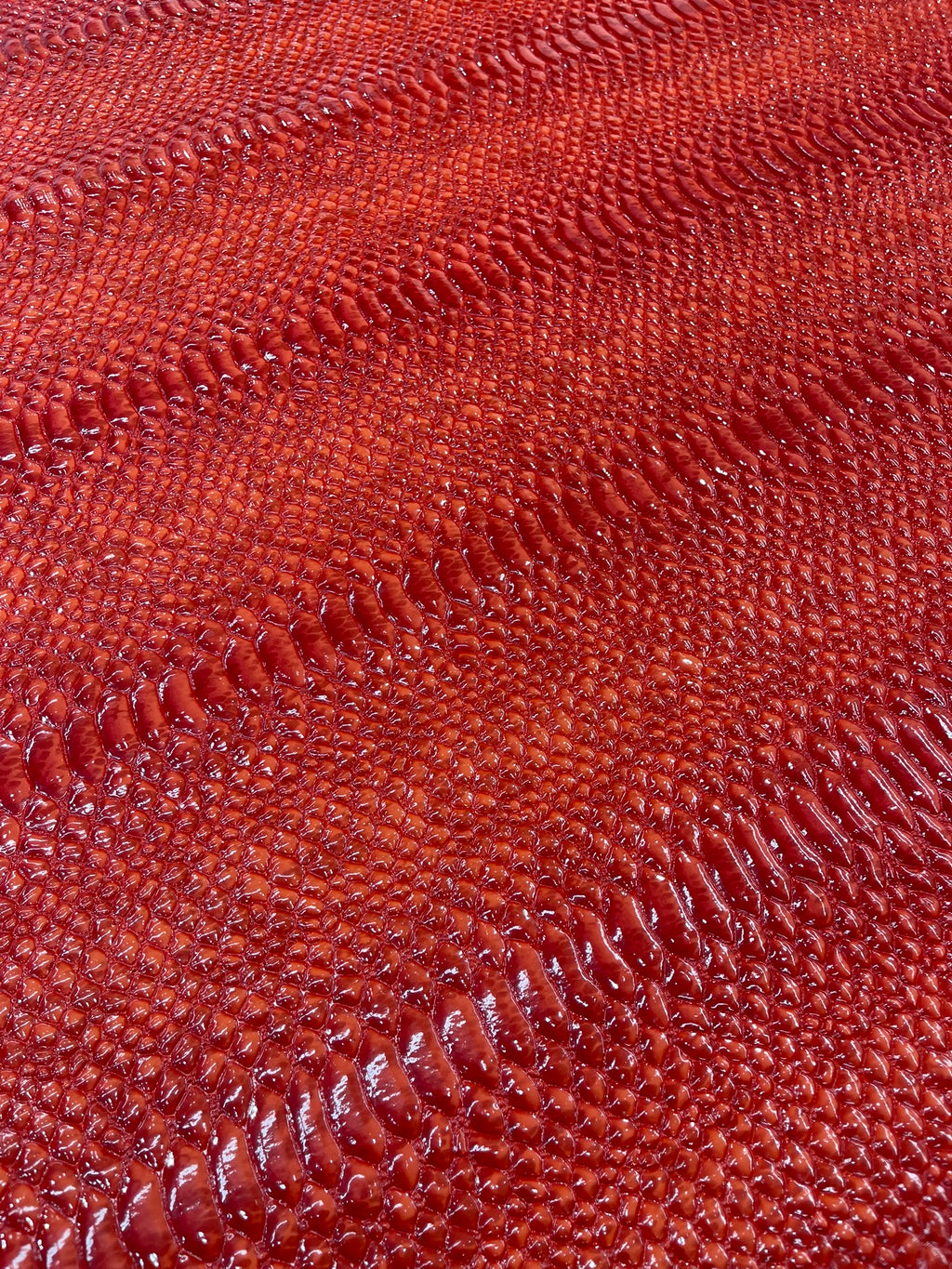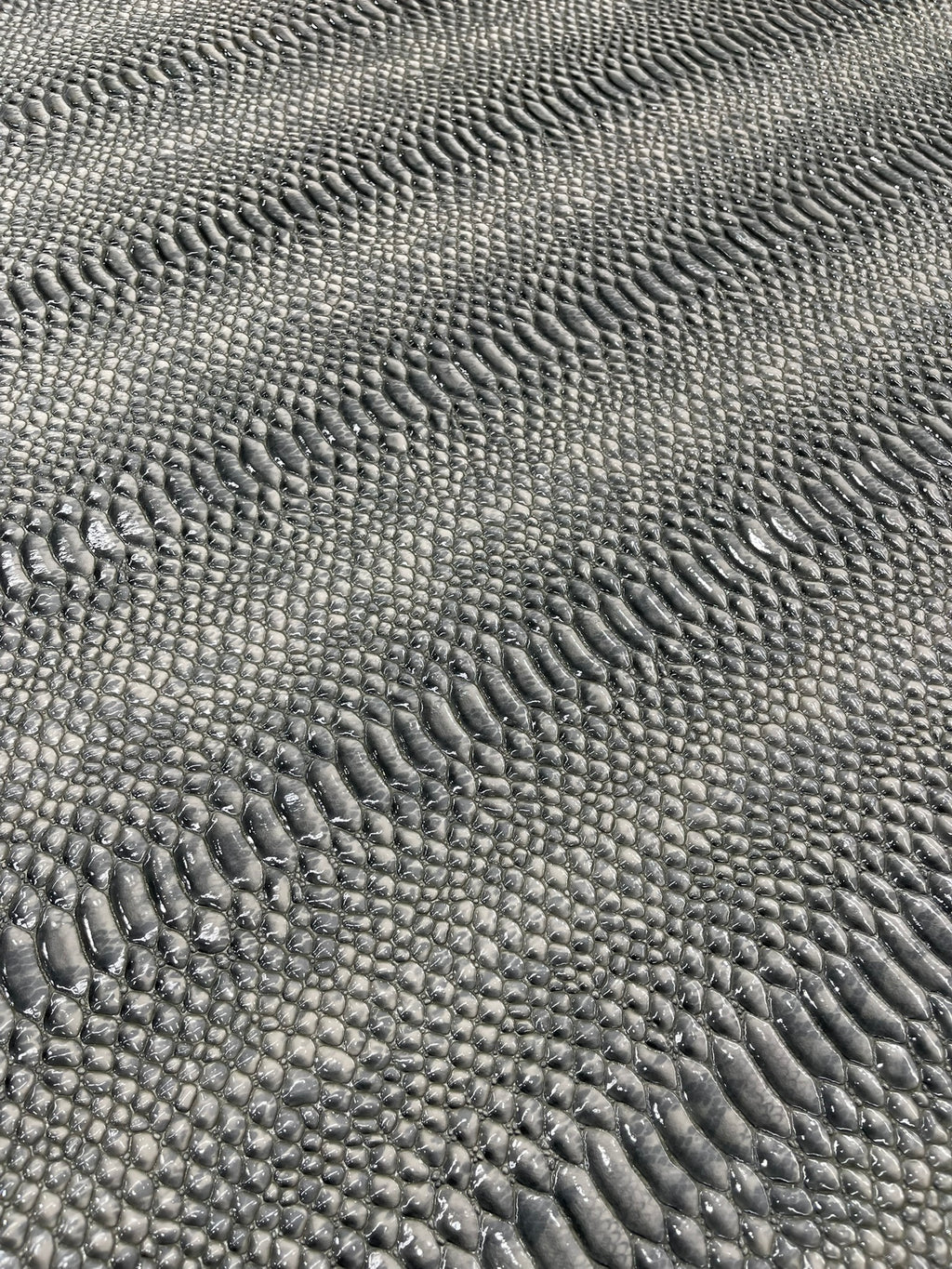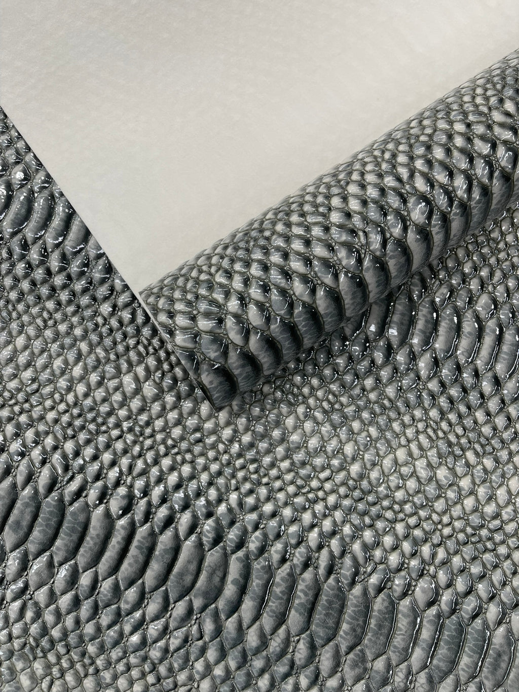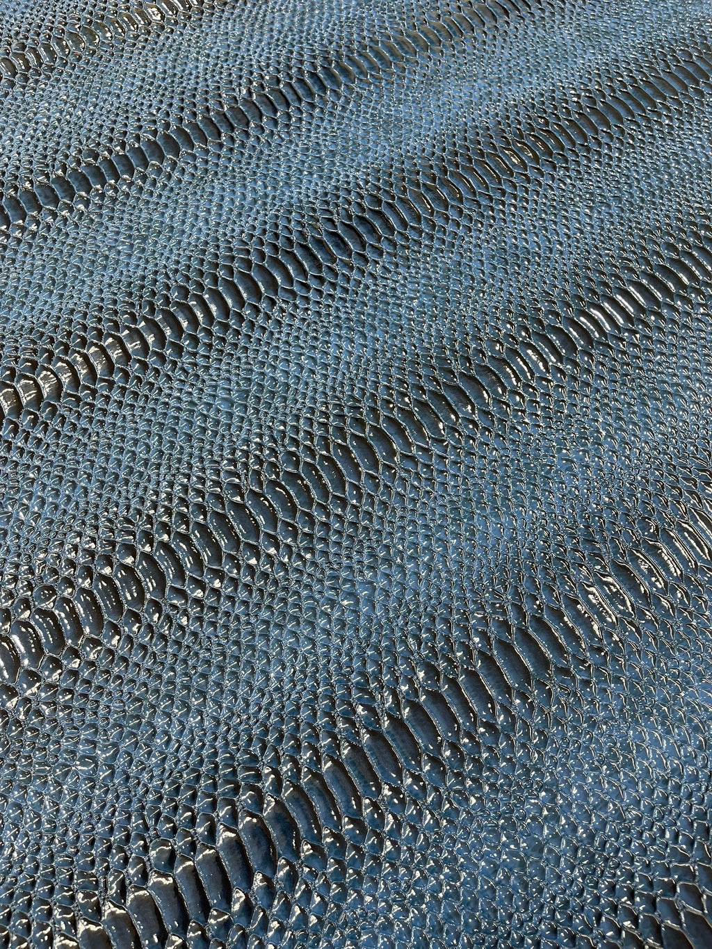 This Cobra Snake Shiny Vinyl 3D Embossed Fabric feels like the real leather but it's made of PVC. This Crocodile Fabric is embossed and it looks exotic and it has a great texture.