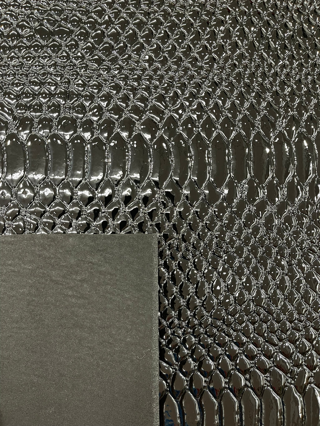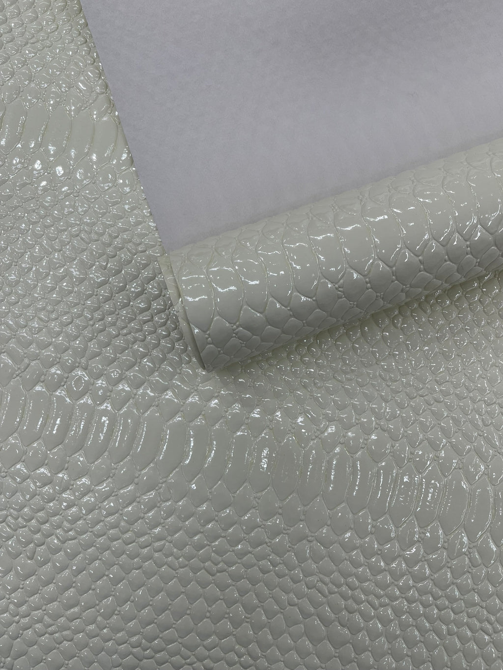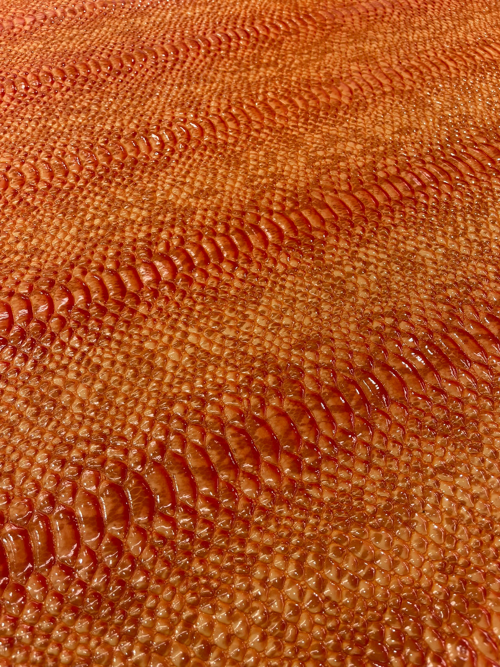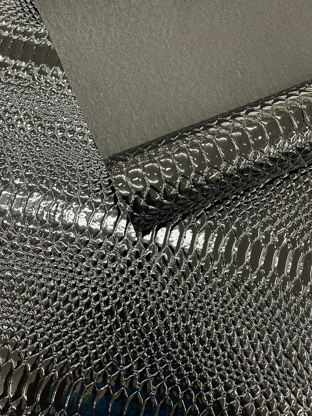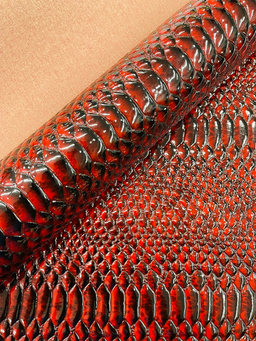 This Cobra Snake Shiny Vinyl 3D Embossed Fabric feels like the real leather but it's made of PVC. This Crocodile Fabric is embossed and it looks exotic and it has a great texture.