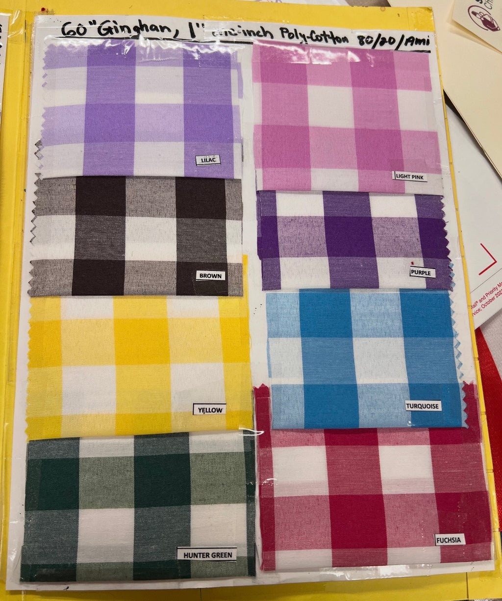 Suave 1 inch Gingham Check Shirting Poplin fabric, is a crisp, smooth fabric that displays a stylish checkered pattern. Woven in a poplin style weave, Suave 1 inch Gingham Check Shirting Poplin fabric is made from a fiber blend of 90% polyester and 10% cotton. Suave 1 inch Gingham Check Shirting Poplin fabric measures 57/58" wide, has a 95 GSM, weighs approximately 4.6 oz per linear yard, and is 0.15 mm thick. Durable and double-sided, Suave 1 inch Gingham Check Shirting Poplin fabric is machine washable and easy to clean. The square pattern featured on Suave 1 inch Gingham Check Shirting Poplin fabric is 1 inch in width for each square. Whether by the yard or in bulk by the roll, Shop Suave 1 inch Gingham Check Shirting Poplin fabric online at wholesale prices today!
