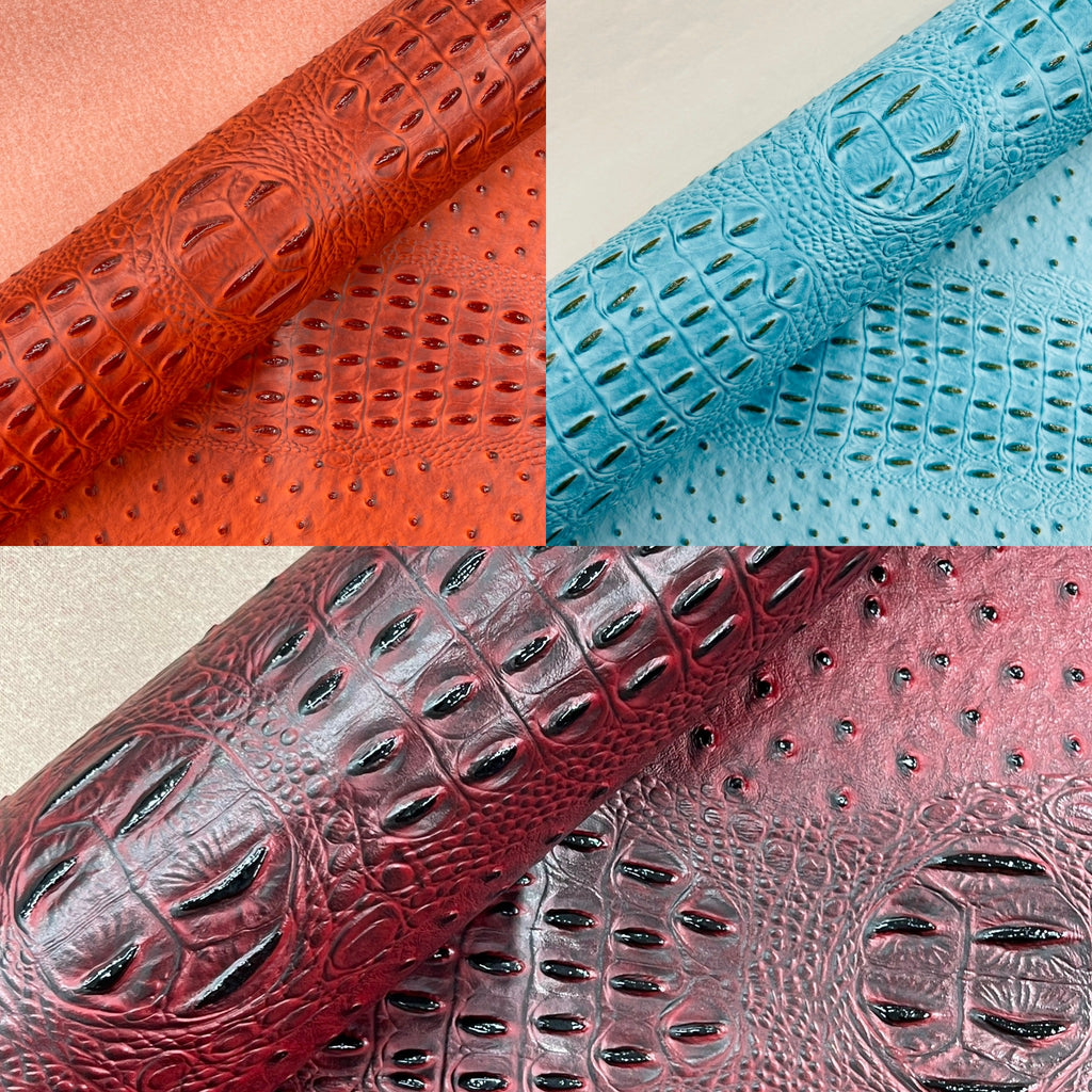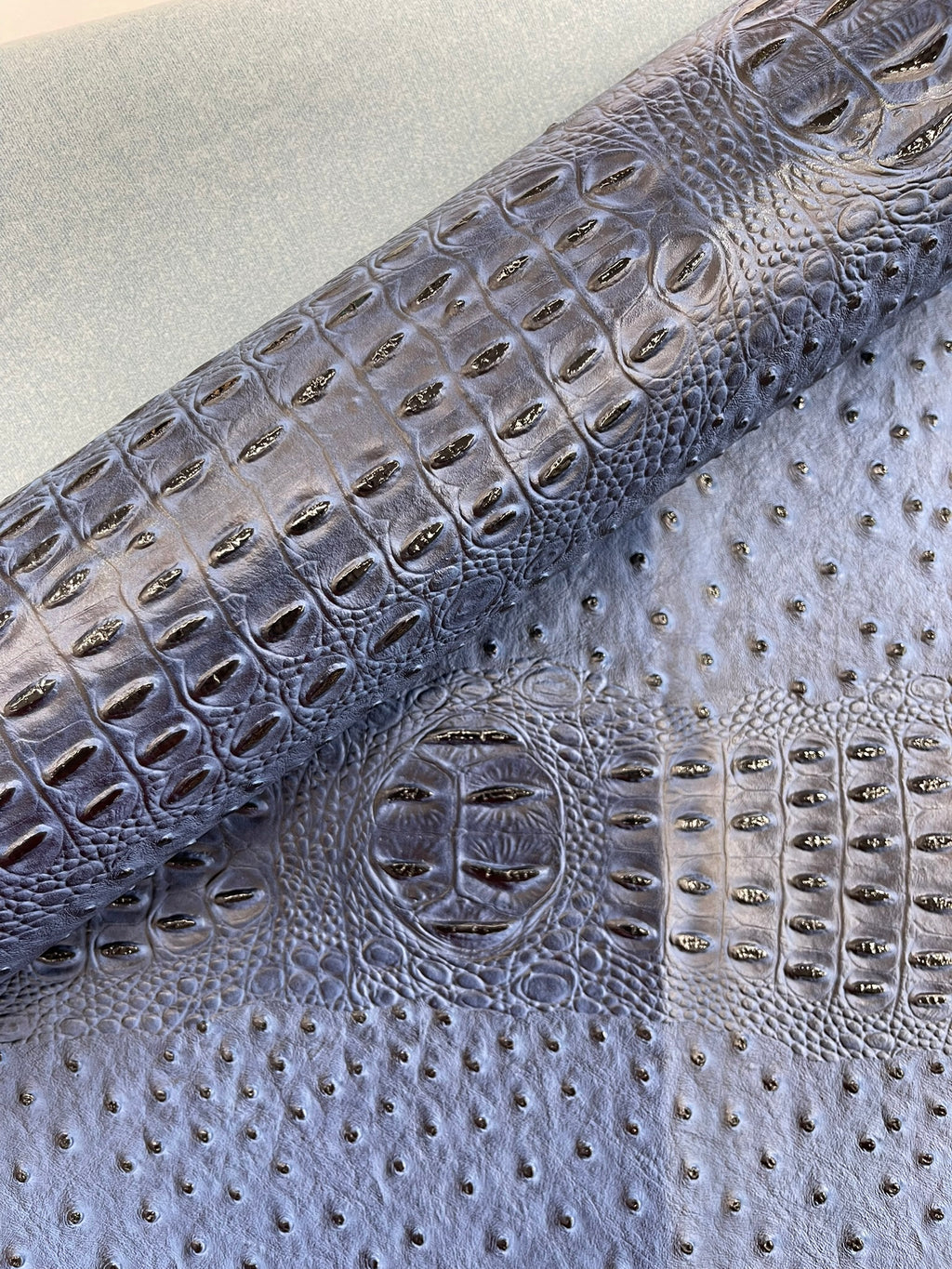 Gator Ostrich Embossed Vinyl Fabric By The Yard / 2 Tone Crocodile Ostrich Vinyl Leather 54" Wide