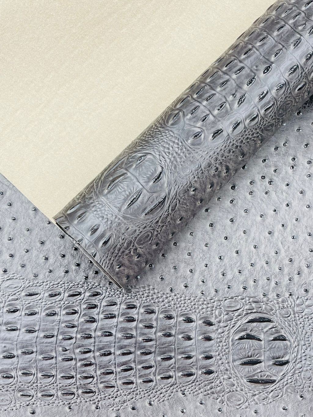 This Ostrich Gator Fabric Vinyl feels like the real leather but it's made of PVC. This Crocodile Fabric is embossed and it looks exotic and it has a great texture.